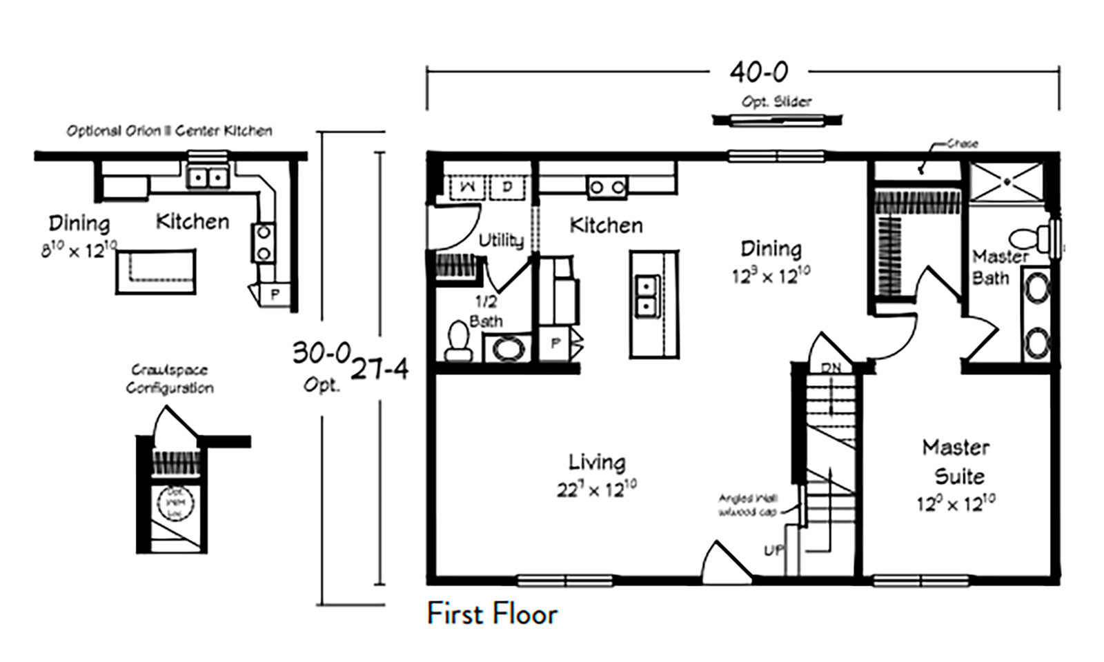 As it is one of our premier models, the Orion II is an efficient Cape Cod home with 1,039 square feet on the main floor and 597 square feet upstairs that can be finished as extra living space or left unfinished for flexibility. Designed for 1–3 bedrooms and 1.5 baths, it’s ideal for first-time homebuilders, downsizers, or small families seeking comfort without compromise.
