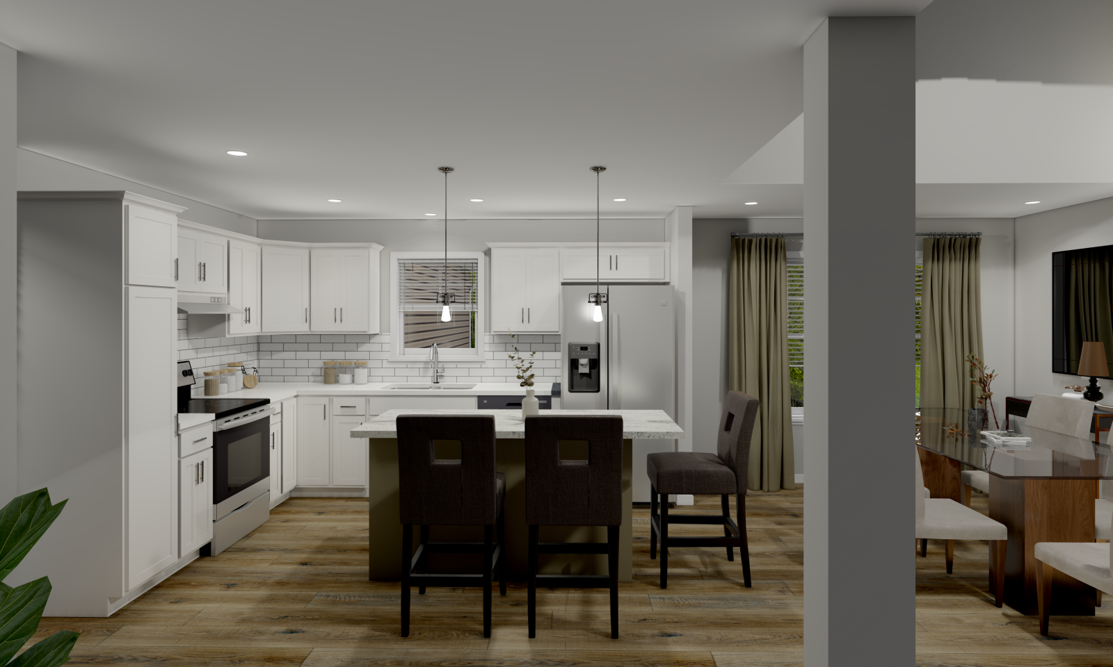 This model delivers 2,132 sq. ft. of well-planned space with 3 bedrooms and 2.5 baths, offering the perfect balance between open-concept living and defined rooms. A spacious first floor provides a welcoming kitchen and living area and includes a large primary suite. The second floor offers two comfortable bedrooms, a home office, and a loft overlooking the living room.