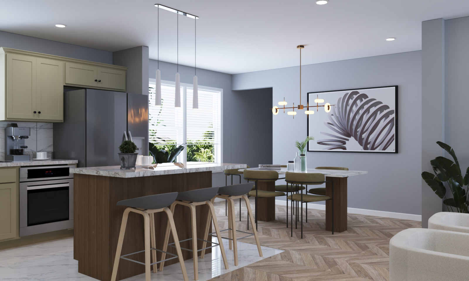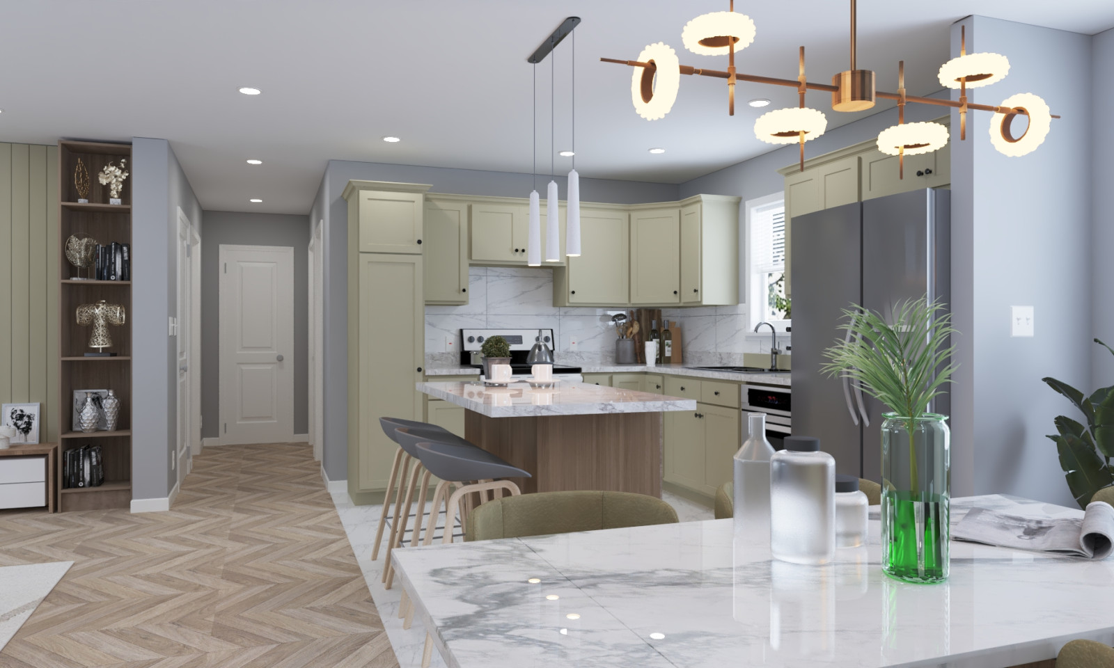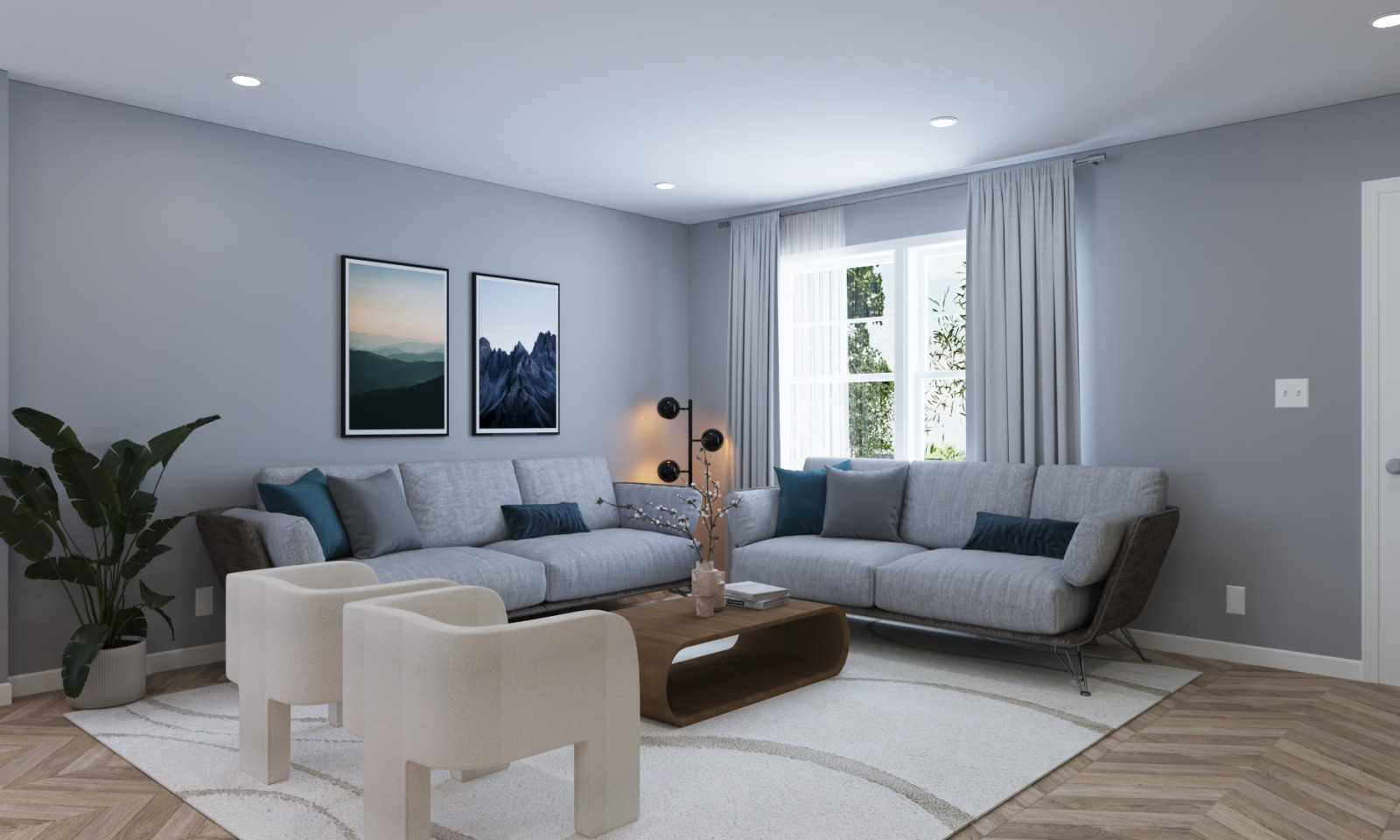 Featuring three bedrooms and two bathrooms, this 1,320-square-foot floor plan offers a bright, inviting atmosphere for family gatherings or quiet evenings in.