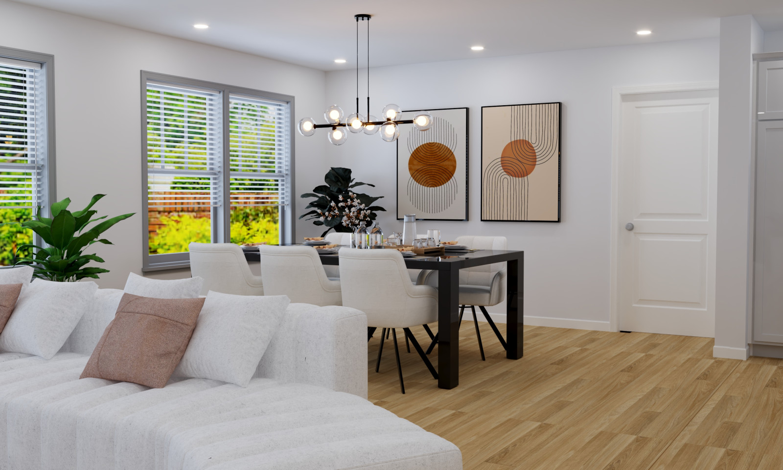 Designed with three bedrooms and two bathrooms, this floor plan creates a comfortable, inviting environment perfect for family life or entertaining guests.
